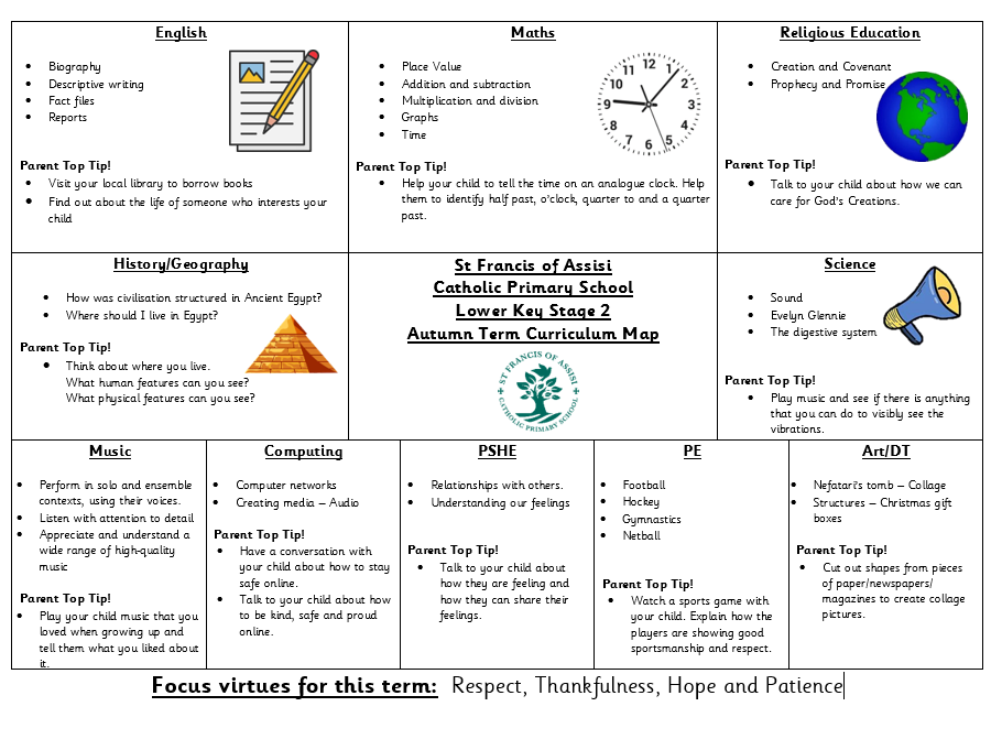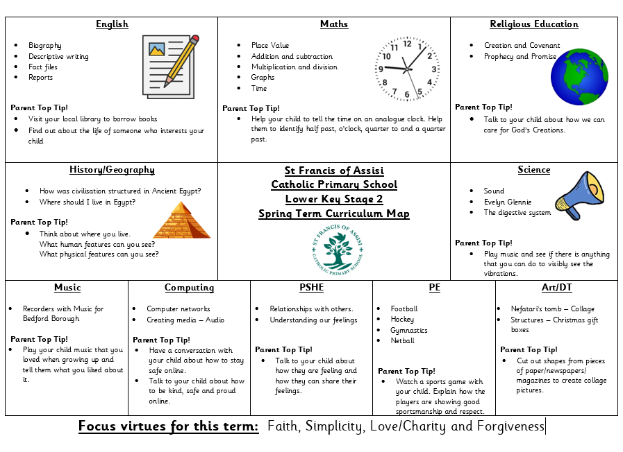 In Lower Key Stage 2 at St Francis of Assisi, we have 3 classes. The Oak Class, The Willow Class and The Silver Birch Class. Use this page to keep up to date with what we are doing in class and to see some top tips for things that you can do to support your child with their learning.